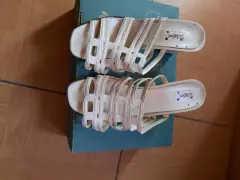 Zapatos blanco en buen estado seminuevo de tacón cuadrado para uso de playa cómodo