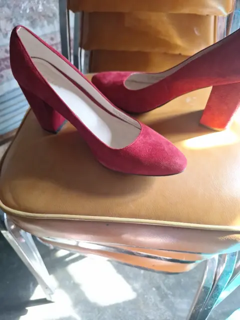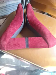 Zapato gamuza color rojo número 7.5, piel tacón 8, una puesta, cómodo