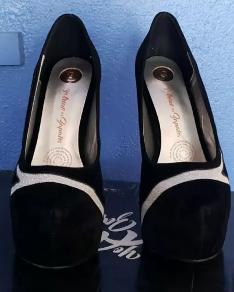 Zapato plataforma negro. Hermoso zapatos de plataforma Negros No. 4.5Tipo Ante Tacon 12 cmTotalmente nuevos