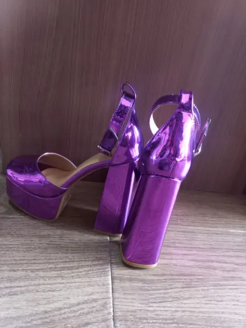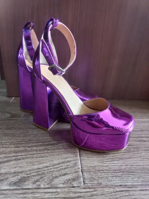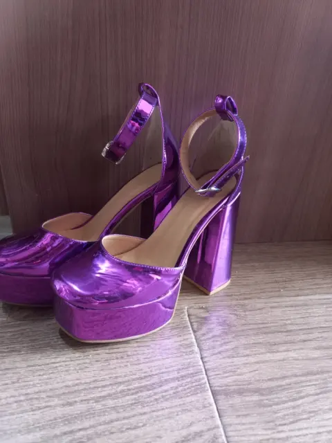Zapatos altos de super moda en charol rosado o lila, 1 sola puesta, talla 3.5