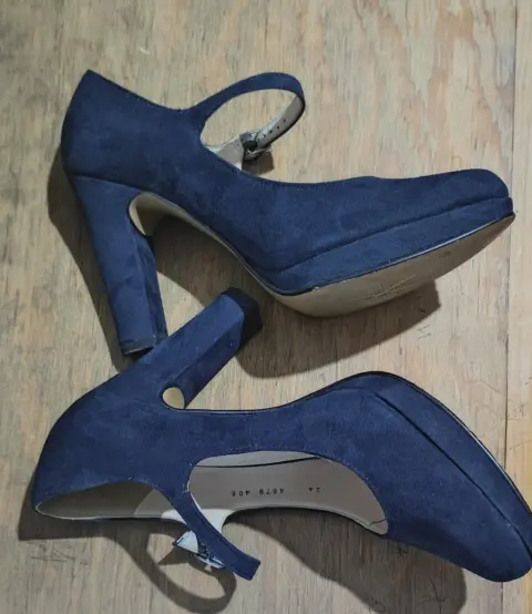 Marca Andrea, No 4, de ante azul marino, tacón del 9, cómodos, seminuevos