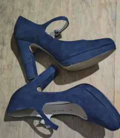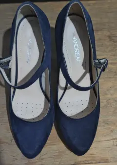 Zapatos azules. Marca Andrea, No 4, de ante azul marino, tacón del 9, cómodos, seminuevos