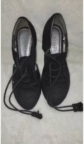 Zapatos casuales color negro,marca Bakers🥿Tacón bajo.❤️Tipo Gamuza.💕Super Cómodos.🥴Son semi nuevas, están en muy buen estadoTalla 4 u 4 1/2