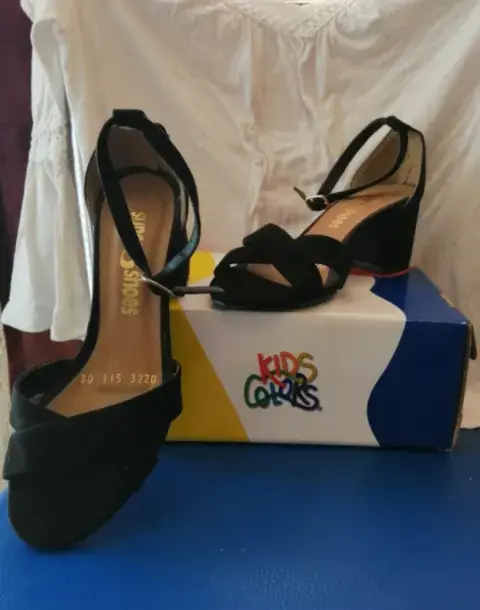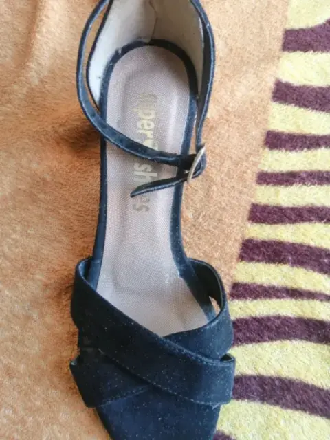 Zapatos de dama. Bonitos zapatos price shoes número 3 negros una puesta tipo huarache con tacon cuadrado 5 cm