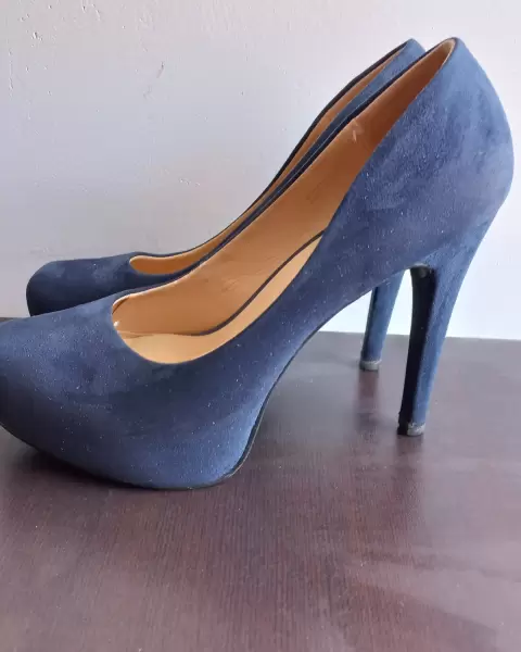 Zapatos de gamuza azul marinoEstán en buen estado El tacón es de 11 cm de alto, si quieres más detalles para que te convenzan manda mensaje