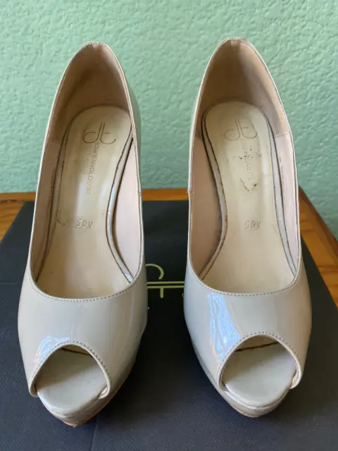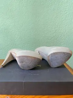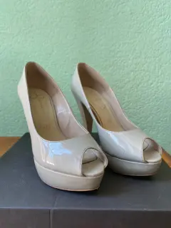 Zapatos « Peep toe » de plataforma en color « crudo » o beige, totalmente de piel, marca Torre Blanca, usados en muy buen estado.