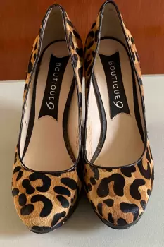 Zapatos super cómodos y chuleadosMarca Boutique 9 de Nine WestColor Animal PrintTalla 5.5 Usa 8Tacón altura 12 cmPlataforma altura 2 cmComodidad 10 de 10Ver fotos de detalles en el interior que en nada disminuyen su funcionalidad.Se está descarapelando el interior consecuencia de tenerlos guardados, por eso los pongo a la venta, ya no los uso.