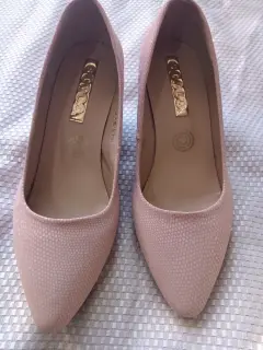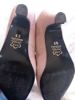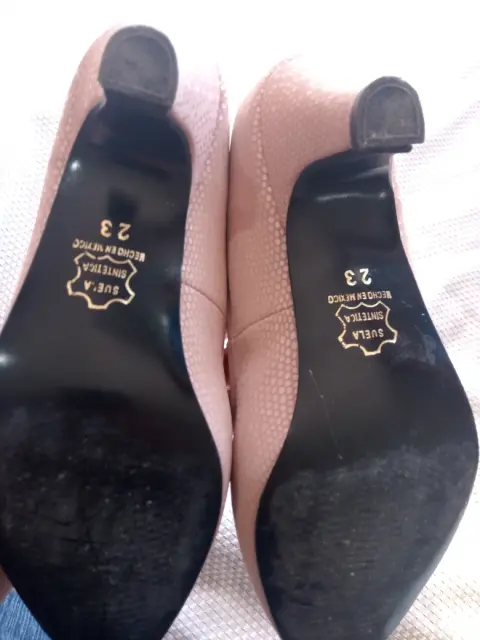 Color rosa. Número 23. Altura del tacón 5cm. Solo se los puso una vez. Esta en su caja