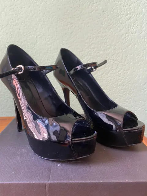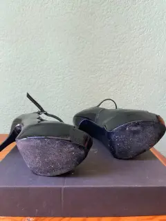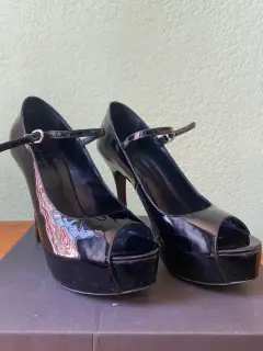 Padrisimos zapatos de tacón negros « Peep toes » de plataforma de charol 👠👠👠 con correa al tobillo marca Diego Torre Blanca talla 24, totalmente de piel ideales para usar con vestido de fiesta y perfectos para bailar, están usados pero en muy buen estado.
