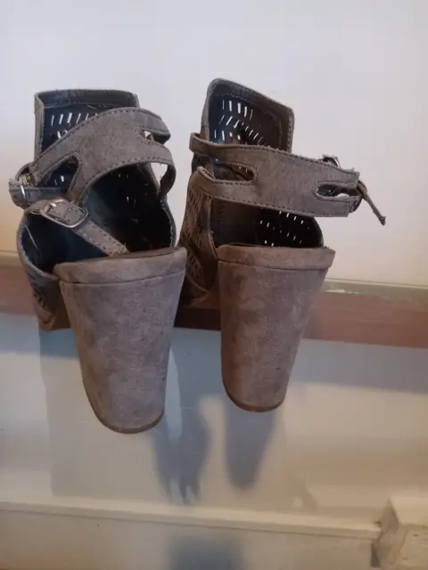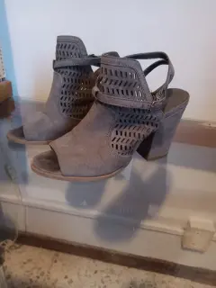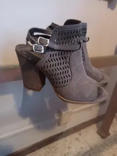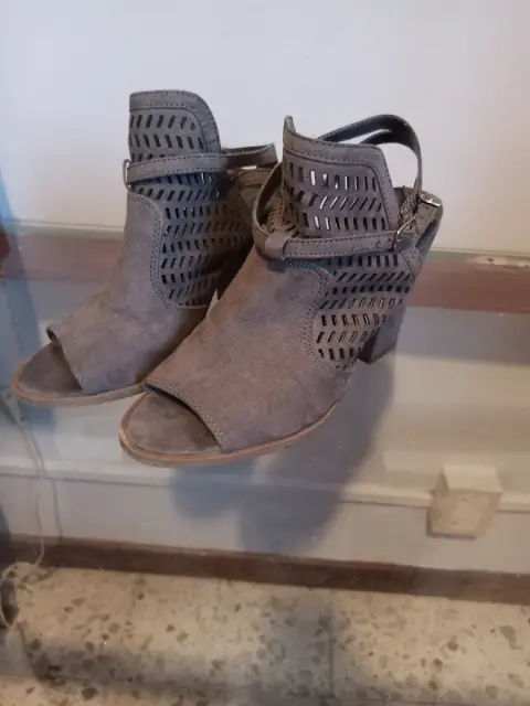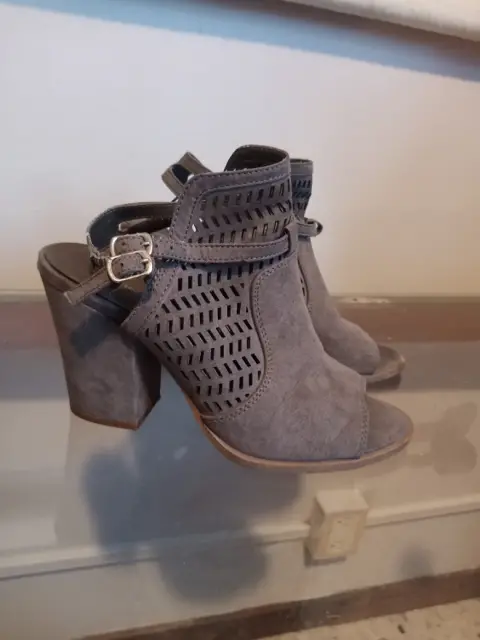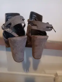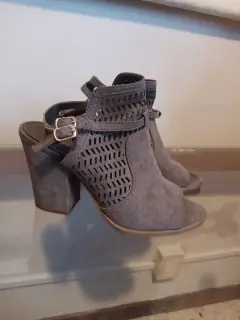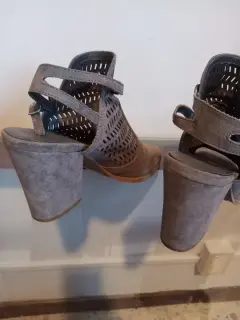 Zapatillas de tacón color gris, de pie cerrados , tacón grueso y no muy alto