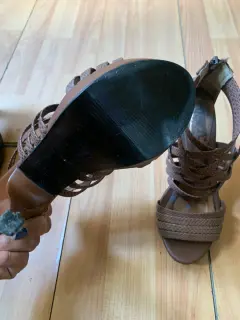 Zapatillas con plataforma de 2 cm aprox y tacón 10Cm. El estilo es cómo piel de víbora. Cómodos y elegantes