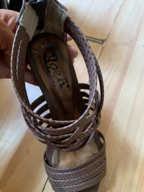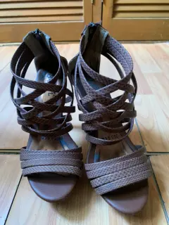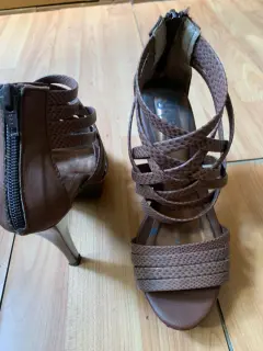 Zapatos de tiras. Zapatillas con plataforma de 2 cm aprox y tacón 10Cm. El estilo es cómo piel de víbora. Cómodos y elegantes