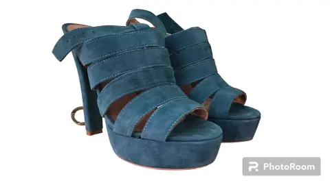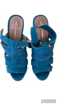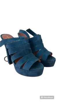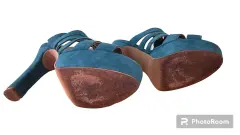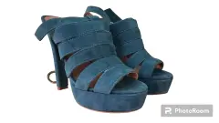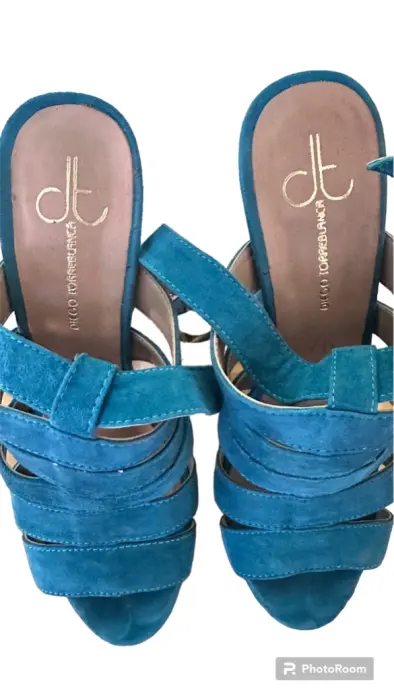 Hermosos zapatos/sandalias Diego Torreblanca de plataforma de ante azul numero 4; quedan con todo tipo de outfit, en súper buen estado.