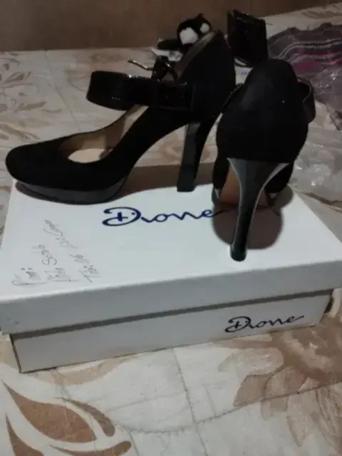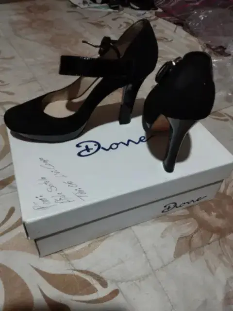 Zapatos Dione, 100%cuero, exterior terciopelo y correas y tacones en charol 10cm , plataforma 2cm , buen estado.