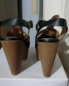 Zapatos estilo vintage con plataforma muy cómodos, color negro combinado con tacon de color natural, número 25 no tiene ningún detalle.