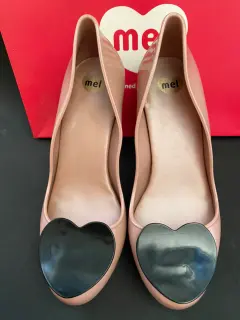 Zapatos Mel by Melissa , en excelente estado, color nude con corazón negro.