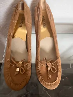 Zapatos Michael Kors talla 27 mex. Son unos zapatos Michael Kors, en gamuza color camel, tipo mocasín, usados, originales, talla 27 mexicano