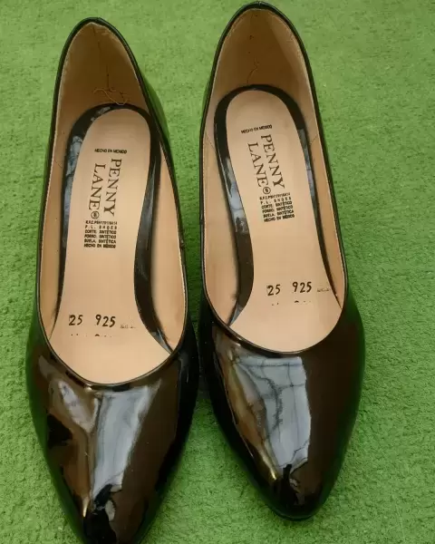 Hermosos zapatos negros de charol, marca Penny Lane. Ideales para una fiesta o eventos formales. Número 25, altura del tacón 8 cm. Tienen un detalle en la suela que se muestra en la foto 5.