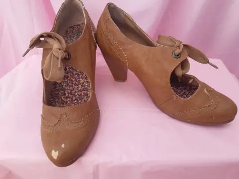 Zapatos tipo Oxford de tacón 7cm. Recomendado para pie angosto, detalles en la piel, por permanecer guardados.