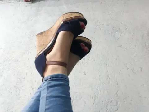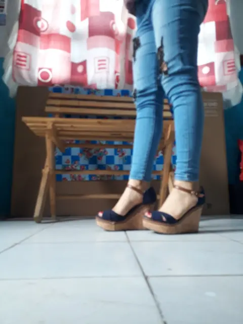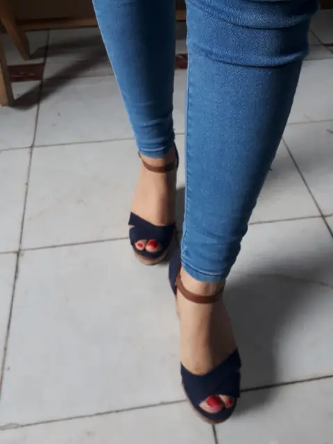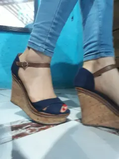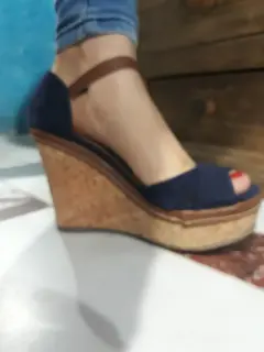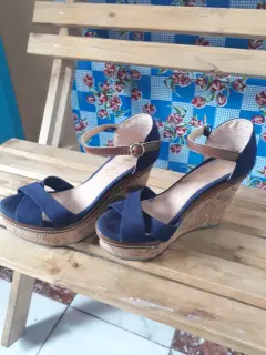 Zapatos plataforma. Son Talla #4 color azul estan en perfectas condiciones son de tela y tienen costura en las las orillas