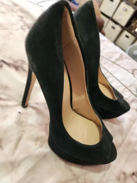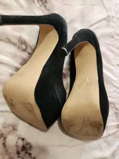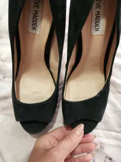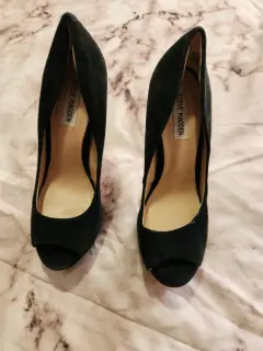 ZAPATOS STEVE MADDEN. Zapatos steve maddren, negros de gamuza talla 5.Tacon número 16 peep toe.