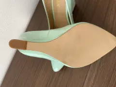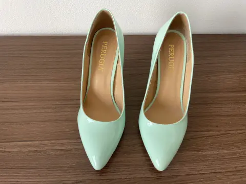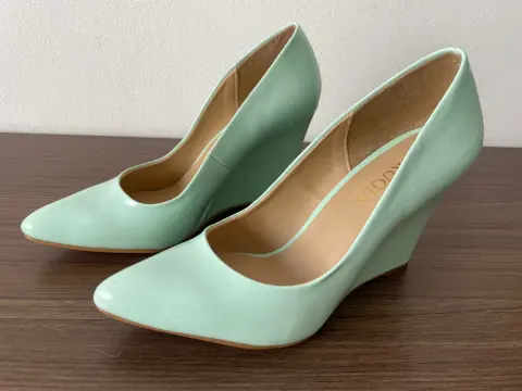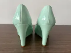 Zapatos color menta tacón 10cm tipo cuña, talla 5.5, marca Perugia, sin detalles, nuevos