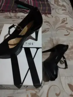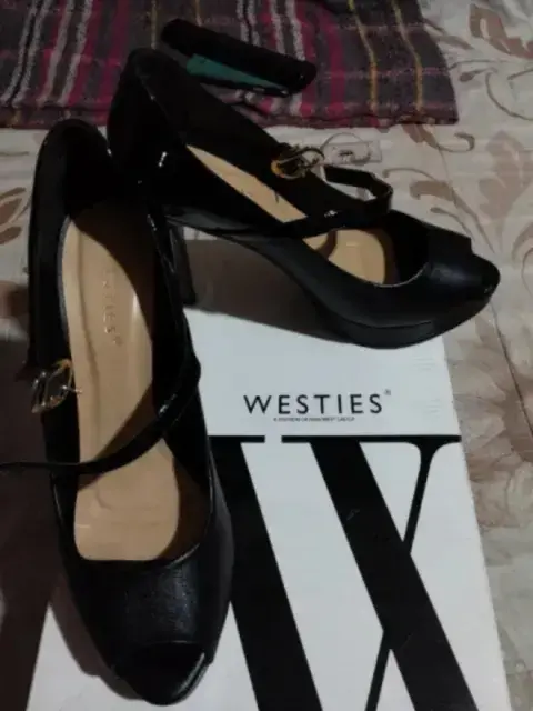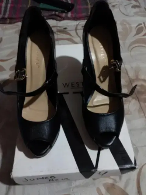 Zapatos westies, corte bovino , forro y suela sintético, descubierto por delante, tacones 10cm ,en buen estado.