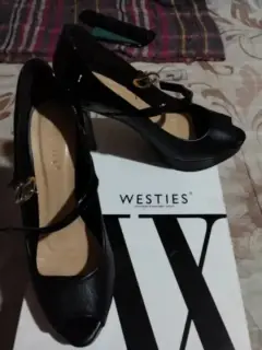 Zapatos westies. Zapatos westies, corte bovino , forro y suela sintético, descubierto por delante, tacones 10cm ,en buen estado.
