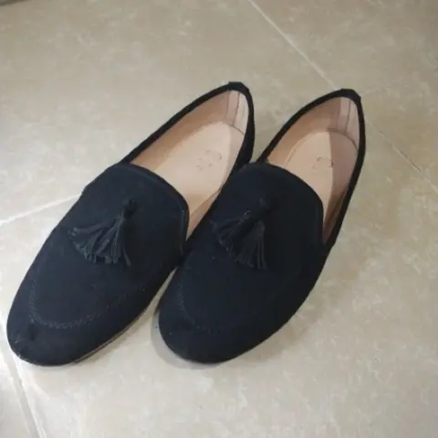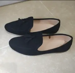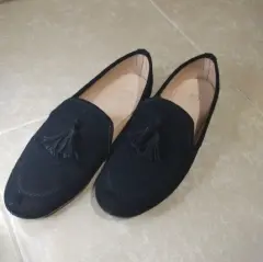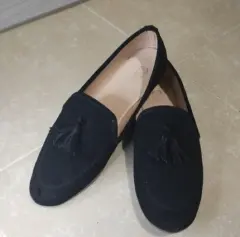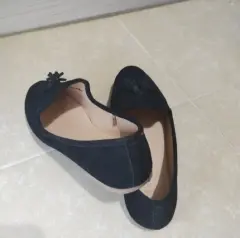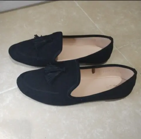 Zapatillas flats planas color negro de material gamuza. Básicos, con pompones de decoración al frente. Bonito estilo. Súper cómodos.