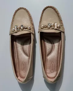 Hermosos Flats Elegantes / Zapatos Descanso, los brillantes los hacen lucir muy elegantes, interior acojinado (confort) para descanso pleno!Color: Beige/DoradoTalla: 27 (viene reducido a 26.5)Estado: Usado una vez¡Se conservan como nuevos!Pd. Si te interesan otras prendas de mi closet, escríbeme y con gusto te armo un kit a muy buen precio 🤩 🤑