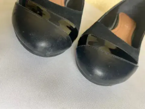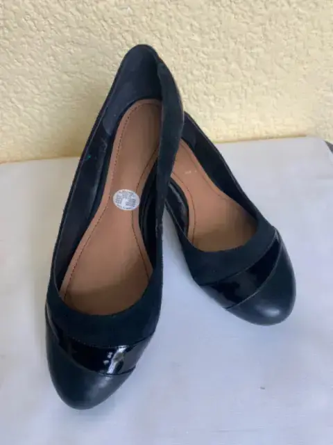 Hermosos zapatos con textura ante, charol y piel Mini tacón muy cómodo de 3 cmsLigeros raspones en las puntasPuede quedar hasta 4.5, caja original