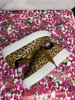 Sneakers animal print. Sneakers con agujetas. Corte textil, suela gruesa 3.5 cm de altura y suela de goma antiderrapante. Envío sábados tal vez antes. No hago intercambios ni apartados.