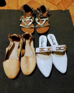 Trío zapatos. Todos talla5, los blancos y beige con poco uso, las sandalias doradas si están usadas pero aún le queda vida