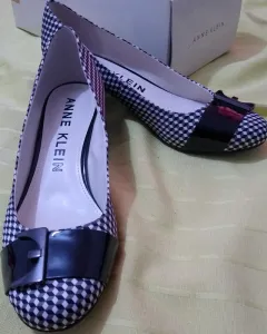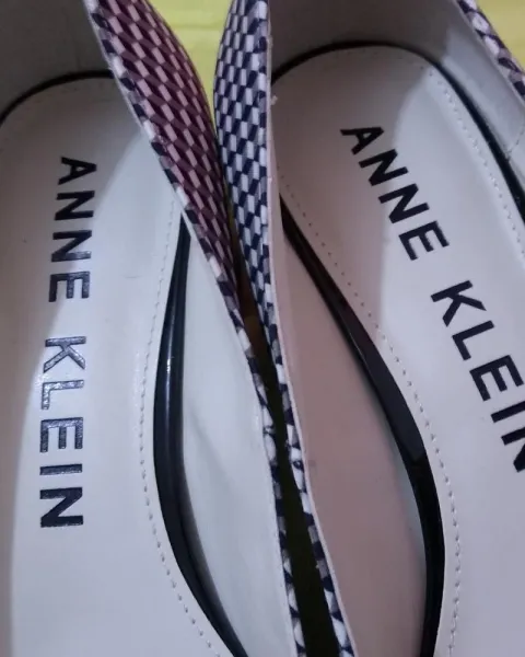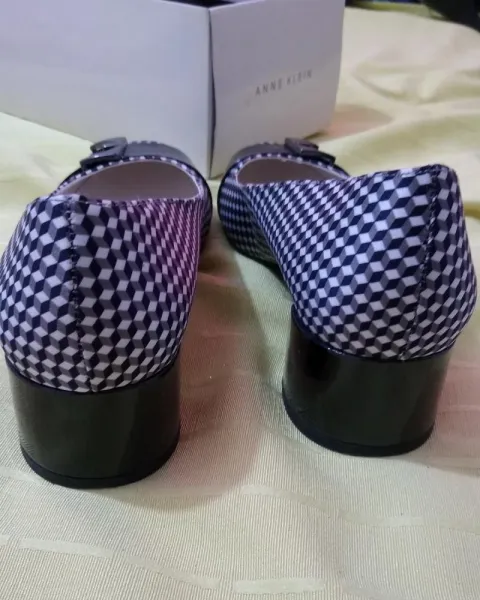 Zapatillas Anne Klein. Cuadriculado. Detalle de hebilla al frente. Tacón aproximado 4 cm. Quedan a #5