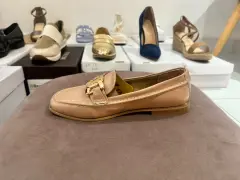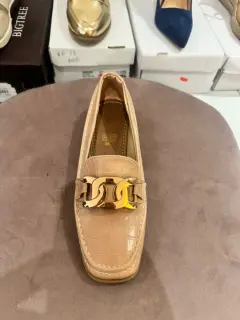 Zapato. Zapato color café con detalle dorado al frente Zapato para oficina