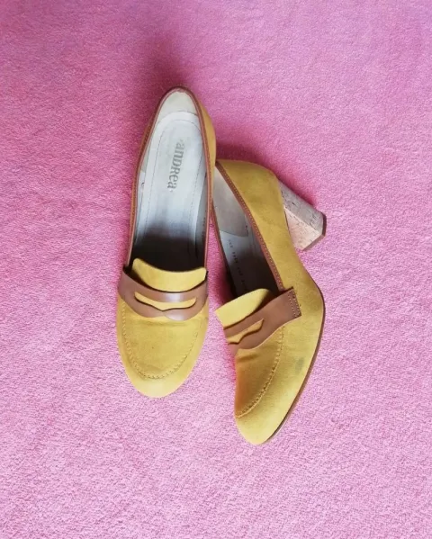 Hermosos zapatos marca Andrea talla 27 solo una puesta color mostaza
