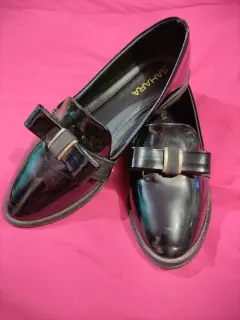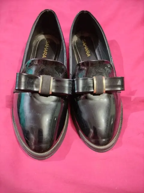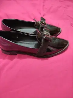 Zapato negro de piso, talla 5, de charol, tacon 1cm