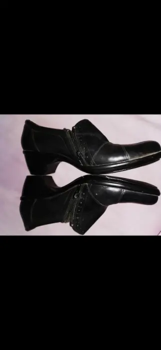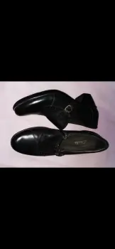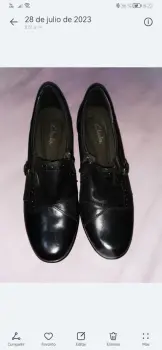 Zapatos Clarks estilo mocasín de Dama con cierre en la lateral del empeine por dentro son acolchonados son número cuatro en color negro se usaron en una ocasión el cierre lateral se abre y tienen decoración en el empeine también de una hebilla.