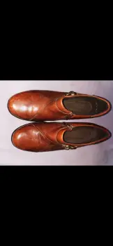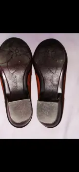 Zapatos marca Clarks estilo mocasín de Dama con cierre en la lateral del empeine por dentro son acolchonados son número cuatro tengo en color café, el cierre lateral se abre y tienen decoración en el empeine también de una hebillaUtilizados en una ocasión