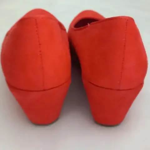 Bonitos zapatos color coral en la foto se ven rojos pero son color coral, tienen una pequeña plataforma, son cómodos, solo los use 1 vez