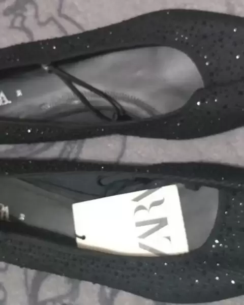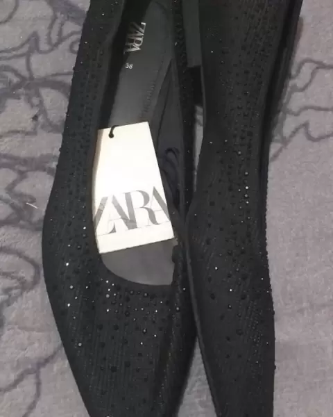 Zapatos Flats Mules Zara❤️. Zapatos Nuevos Flats Mules color negro con brillos número #5 ❤️Escucho ofertas! 💰Uso caja reciclada♻️Envio rápido✔️Aclaro cualquier duda💕😊👍