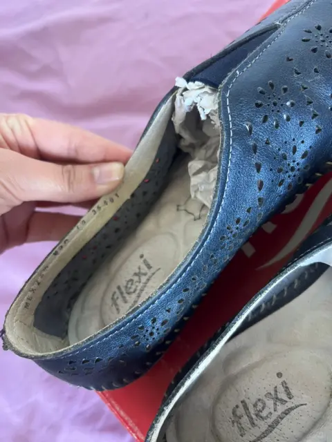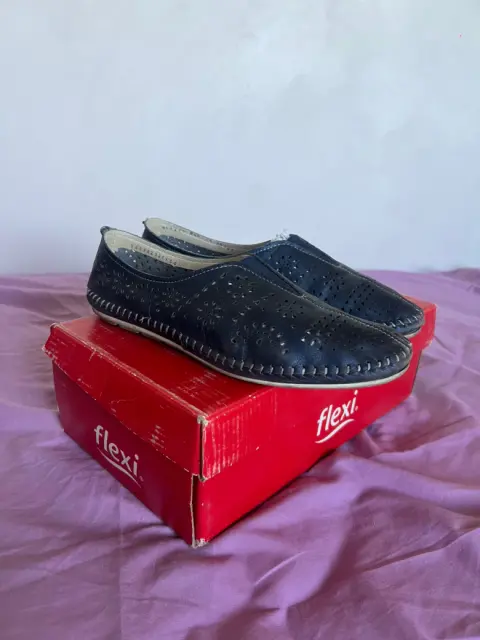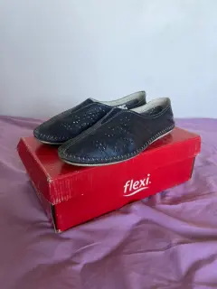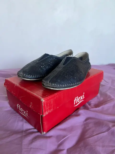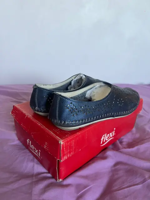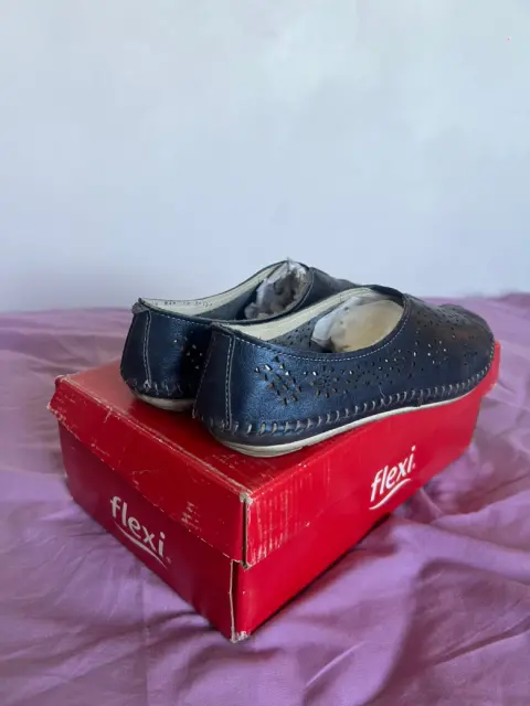 Zapatos Flexi. Zapatos planos, de piel, color azul fuerte. Talla 4 y medio. Usados pero en buen estado.