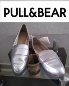 Zapatos Pull & Bear color plateado. Zapatos Pull & Bear en color plata ,en talla 4.5 tienen algo de uso , pero en buen estado, todavía tienen muchísima vida