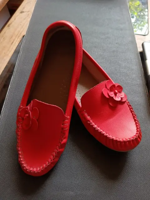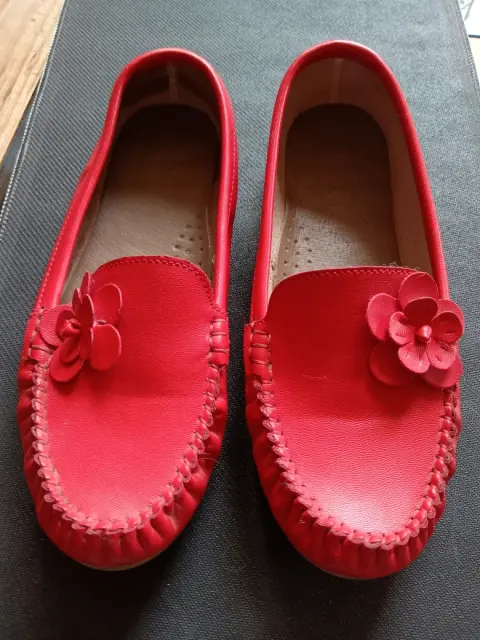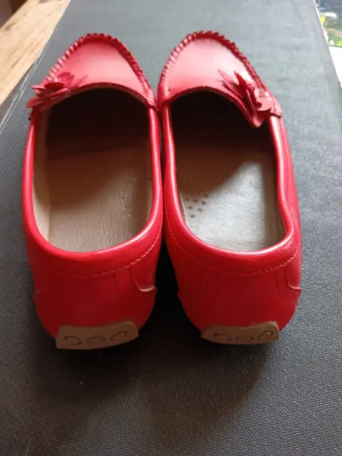 Zapatos se piso No.6. Lindos y cómodos zapatos de piso color rojo de piel con coqueta flor al lado derecho número 6