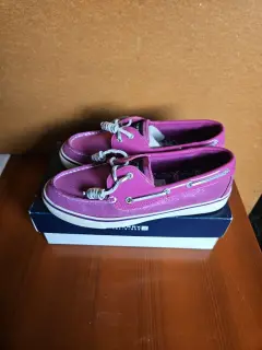 Zapatos top-sider. Cómodos zapatos top-sider en color rosa metalico con plata