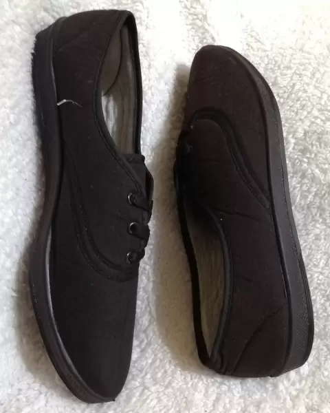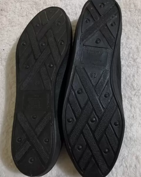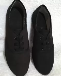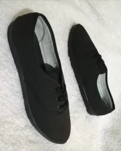 Tenis Textil ligero y suave color negro, diseño de agujetas, suela bajita vulcanizado. Cómodo casual. México Número #26cm. Detalle: el sol bajo un poco la intensidad del negro. Aplica mi código y tu primer compra en la App tiene descuento.