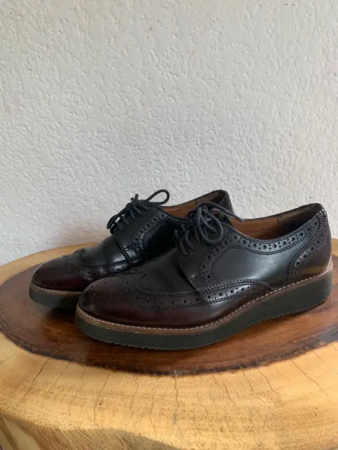 Bostonianos piel. Increibles de piel marca Julio de Mucha. Tienen un poco de plataforma por lo que para un look en la oficina estan increibles. El color es camaleon( vino-negro)