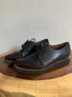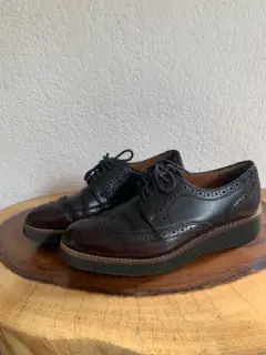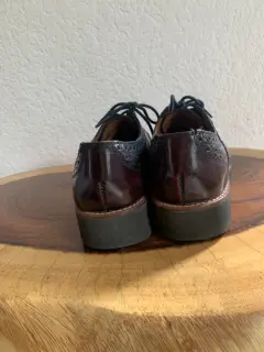 Increibles de piel marca Julio de Mucha. Tienen un poco de plataforma por lo que para un look en la oficina estan increibles. El color es camaleon( vino-negro)