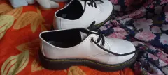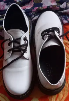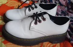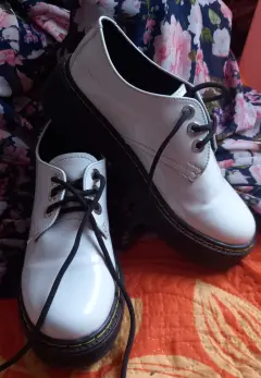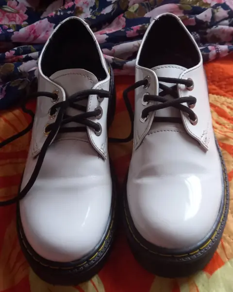 Oxford blancos de cintas. Zapatos de cintas tipo exford moda chunky de plataforma, en material de charol color blanco, suela antiderrapante, diseño en tendencia