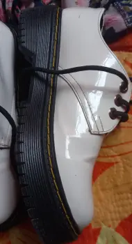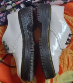 Zapatos de cintas tipo exford moda chunky de plataforma, en material de charol color blanco, suela antiderrapante, diseño en tendencia